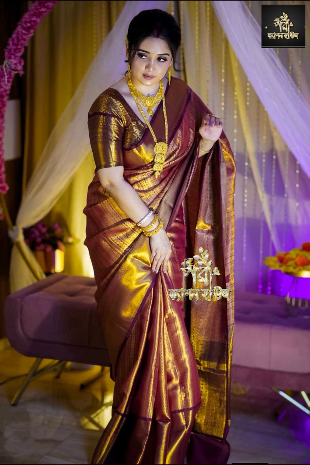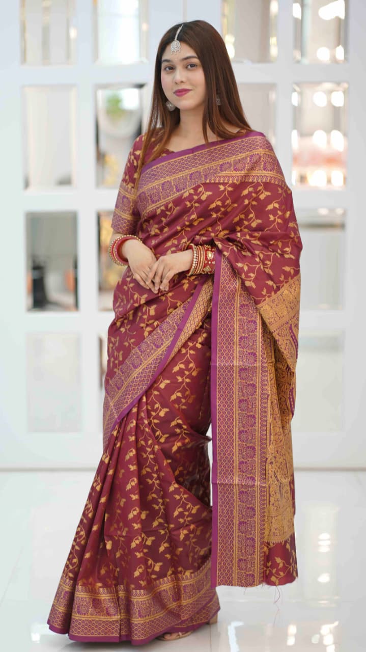 ক্লাসিক গ্ল্যামার শাড়ি ( খয়েরী কালার )