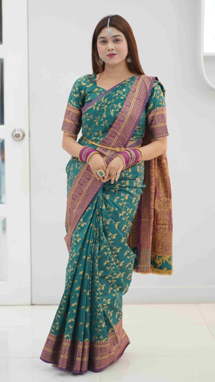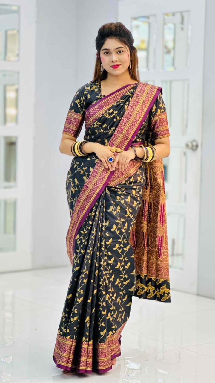 ক্লাসিক গ্ল্যামার কাতান শাড়ি ( বোতল গ্রি...
