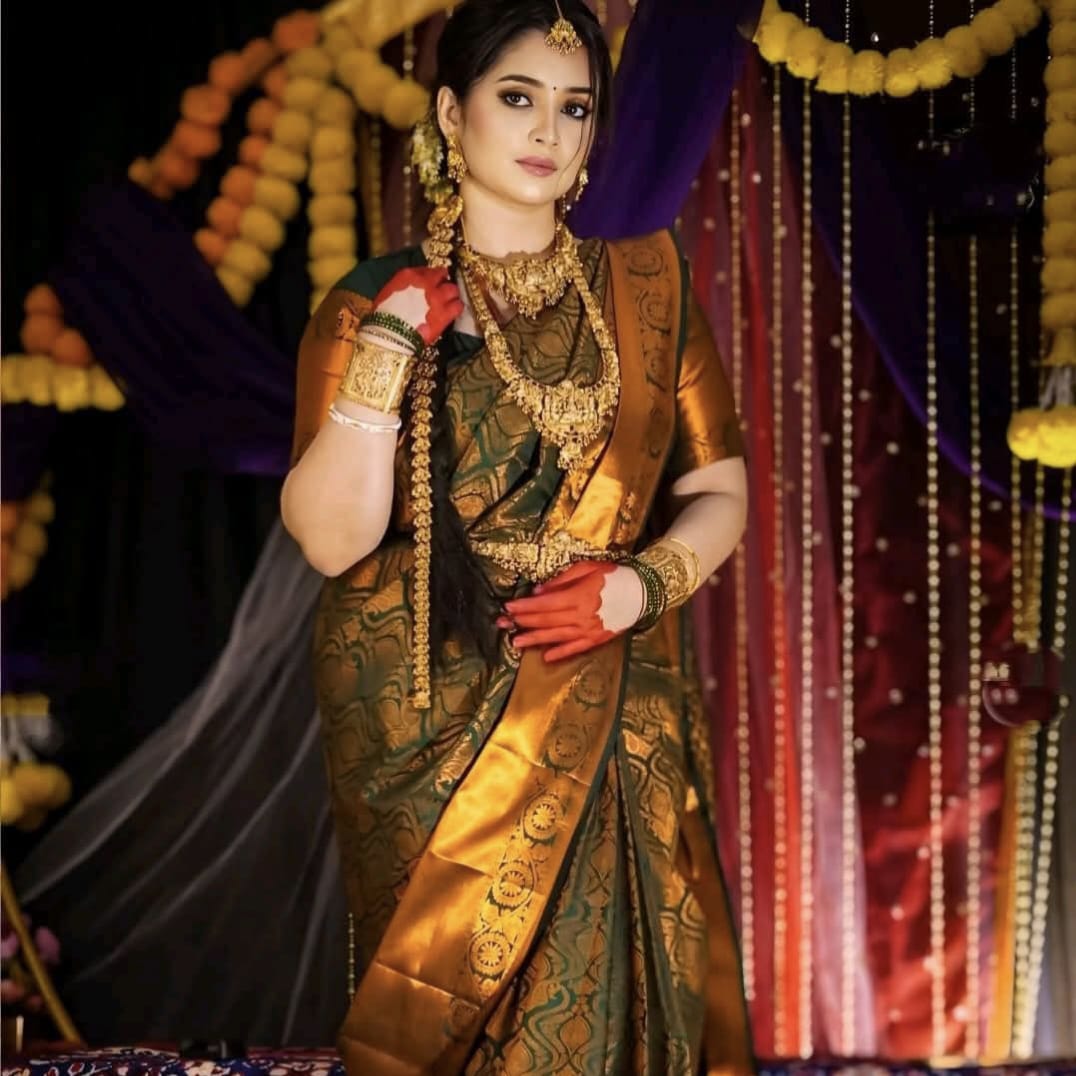 গ্রীন সিল্ক শাড়ি ( গাড়ো সবুজ কালার )