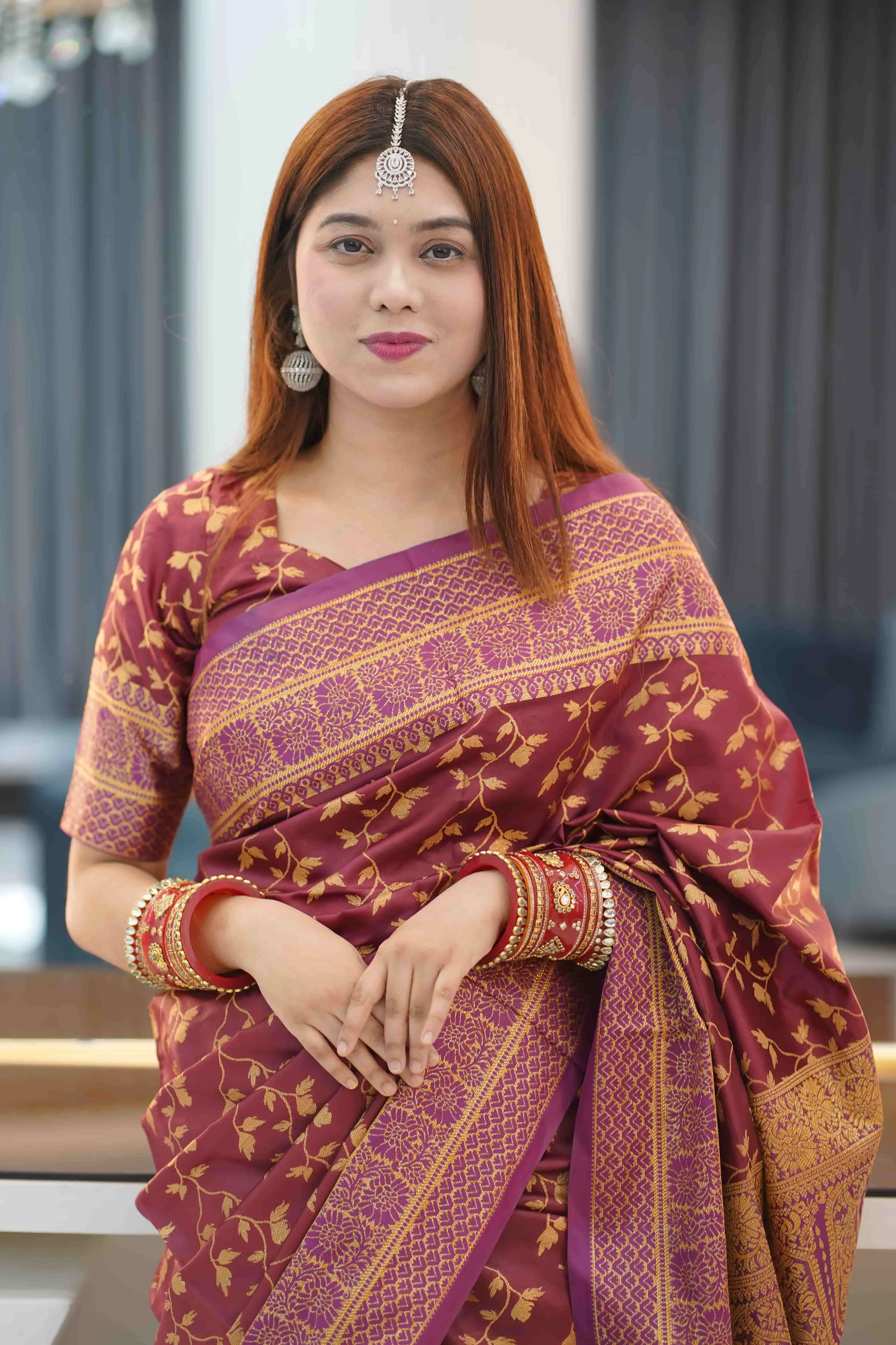Made with a soft silk & thread combination, the saree feels lightweight, breathable and easy to carry — perfect for long-time wear in Bangladesh weather.