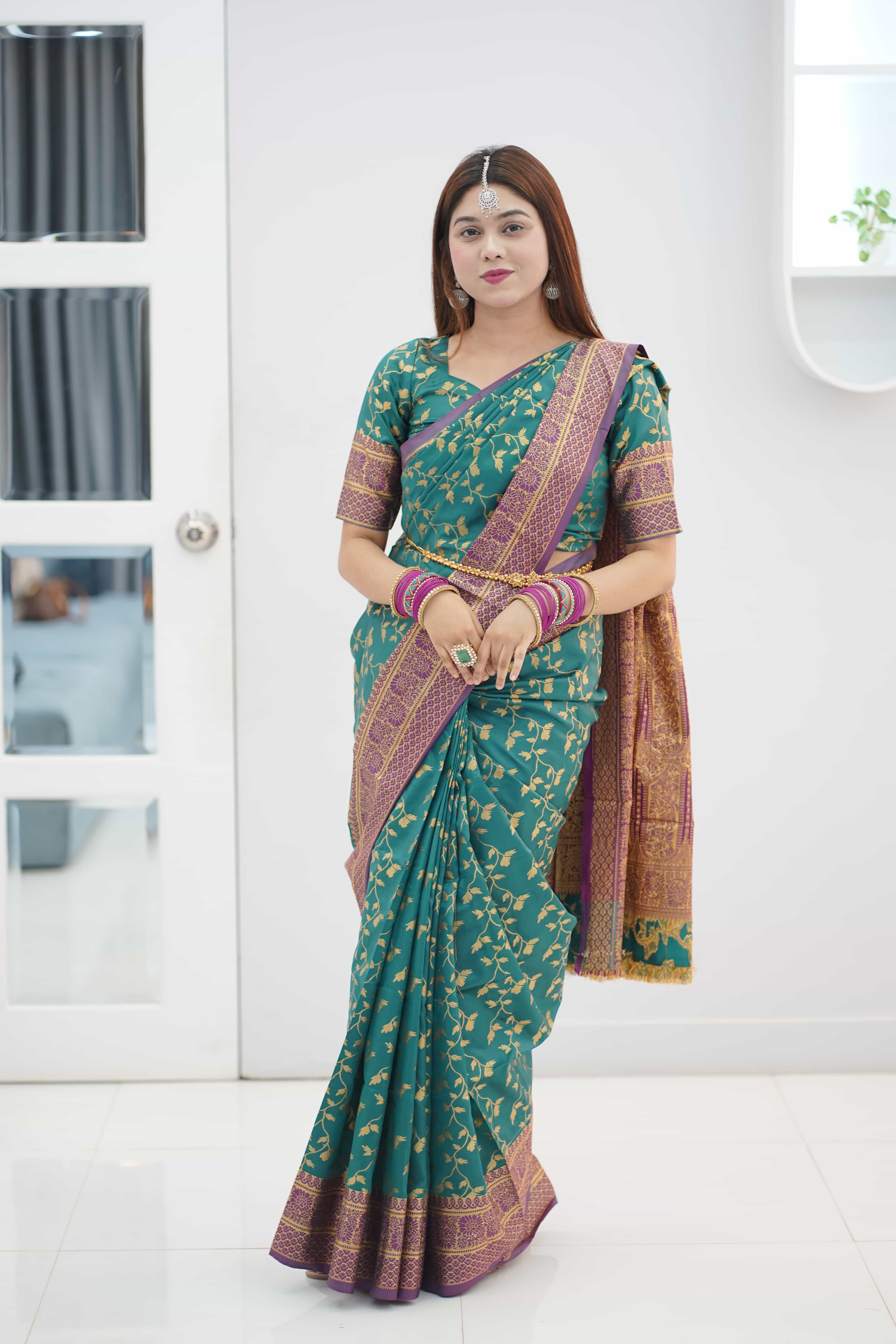 ক্লাসিক গ্ল্যামার কাতান শাড়ি ( বোতল গ্রি...