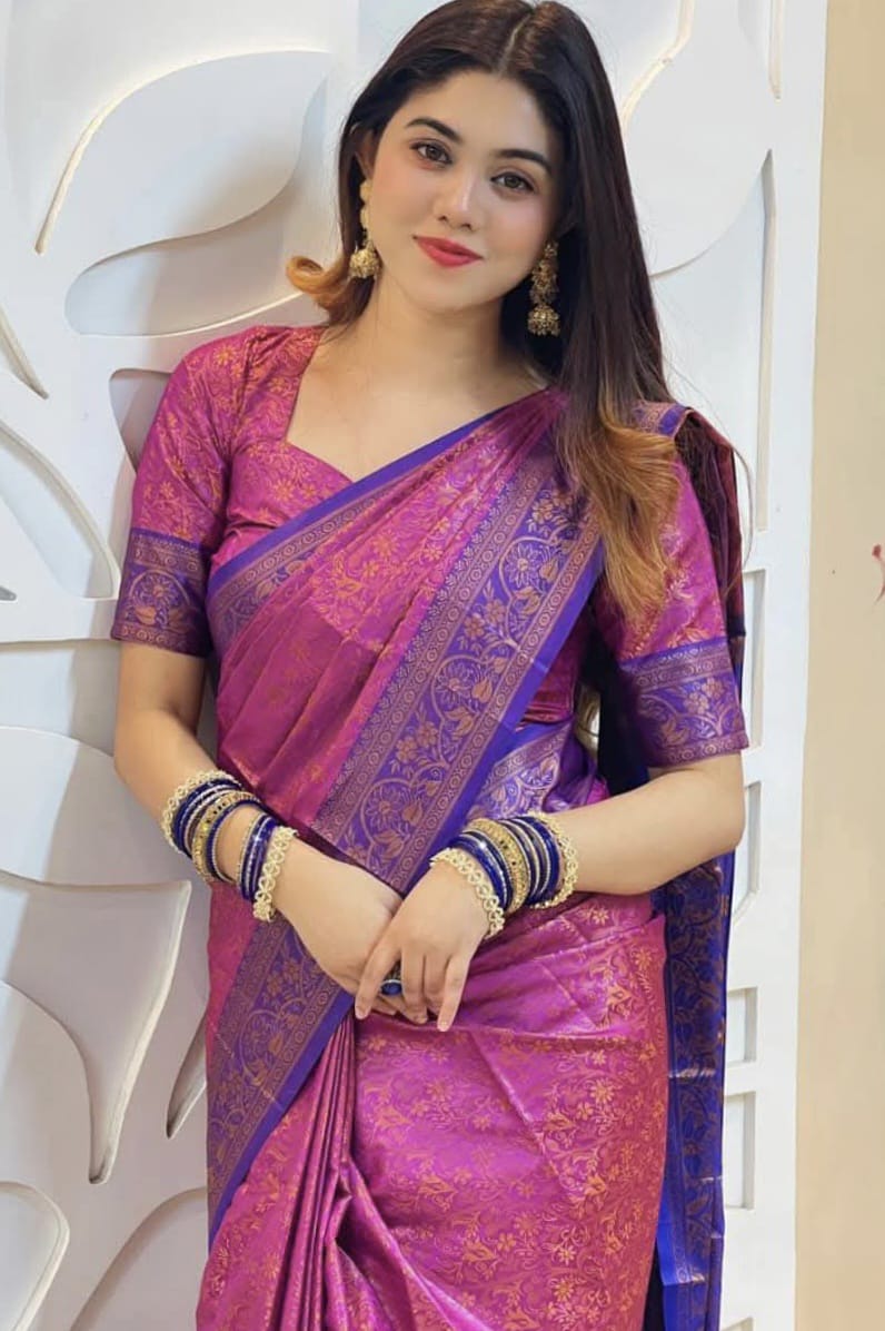 ব্লাউজ পিস সহ কাঞ্চিপুরম শাড়ি (গোলাপি)